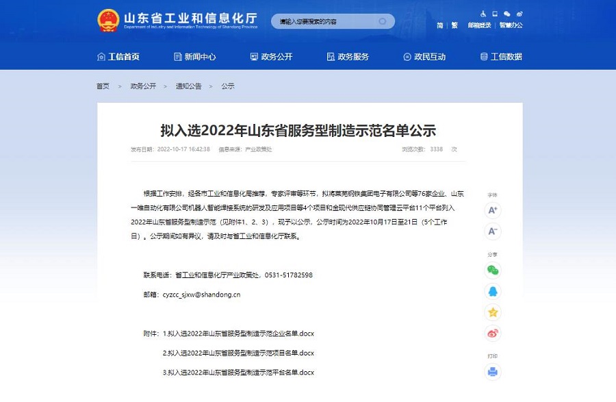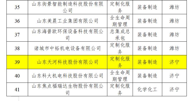 10月17日,山東省工業和信息化廳又傳來喜訊,經各市工業和信息化局推薦,專家評審等環節,擬入選2022年山東省服務型制造示范企業名單公示,山東天河科技股份有限公司脫穎而出,成為濟寧市13家擬入選企業之一。