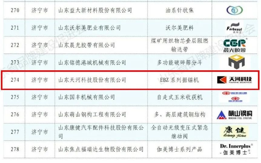 近日,山東省品牌建設促進會公布了“2022年山東知名品牌認定名單,天河科技“EBZ系列掘錨機”憑借優秀的品質和良好的口碑入圍。