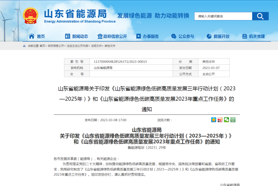 點擊查看:《山東省能源綠色低碳高質量發展三年行動計劃(2023—2025年)》全文