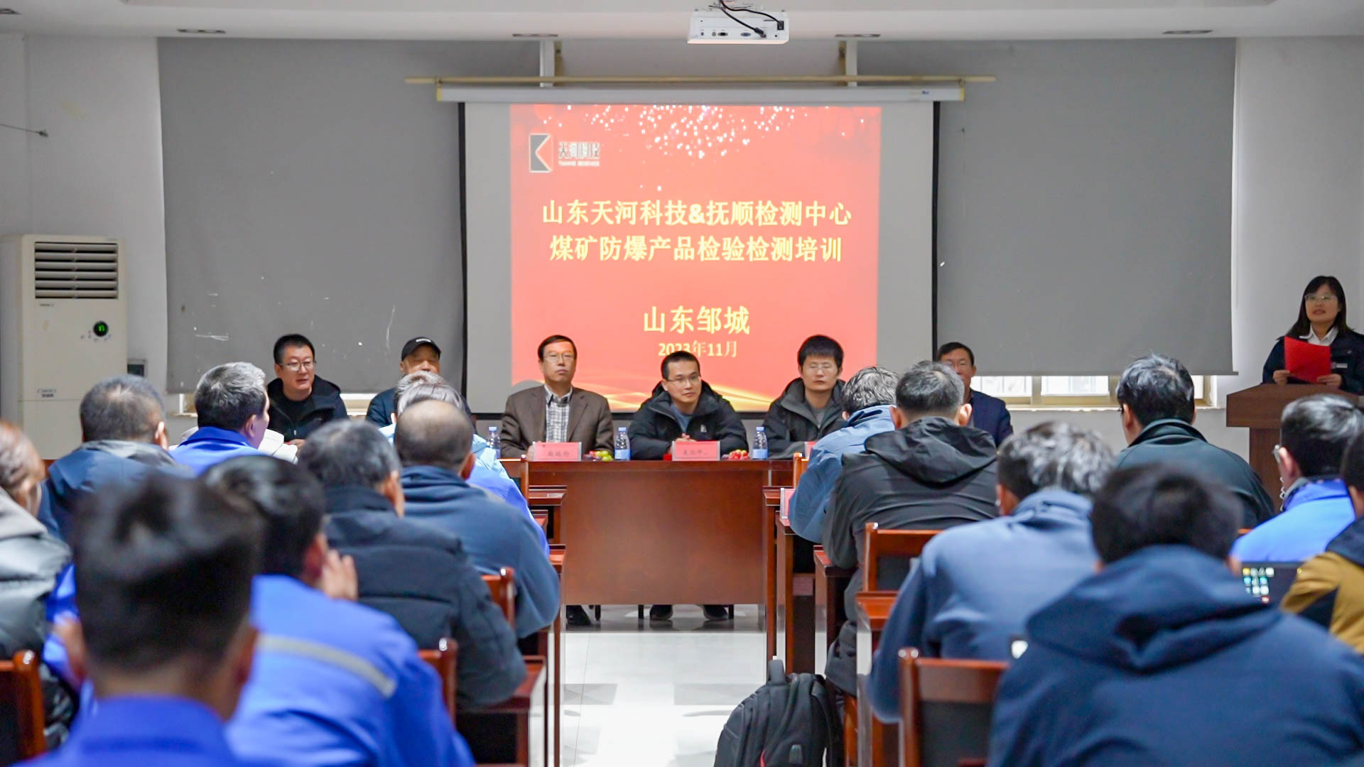 11月11日,山東天河科技特邀撫順檢測中心在公司舉辦了煤礦防爆產品檢驗檢測培訓,撫順檢測中心副主任馬龍、質量監督委員會劉希平、技術部部長吳北平、防爆檢驗室副主任陳凡東、儀表檢驗室主任工程師王東親臨現場指導、授課,山東天河科技全體技術管理人員、技術部、質管部、生產部精英們參加培訓。