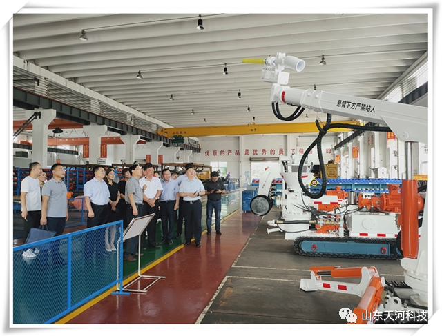 2020年8月9日,中國工程院王國法院士,山東省科技廳黨組成員、副廳長于洪文一行到天河科技公司調研考察煤礦智能裝備科技創新相關情況。中煤科工集團開采裝備技術研究所所長李明忠、西安科技大學機械工程學院院長張旭輝、中國礦業大學礦業工程學院教授方新秋及濟寧市、鄒城市和中心店鎮有關領導陪同考察。