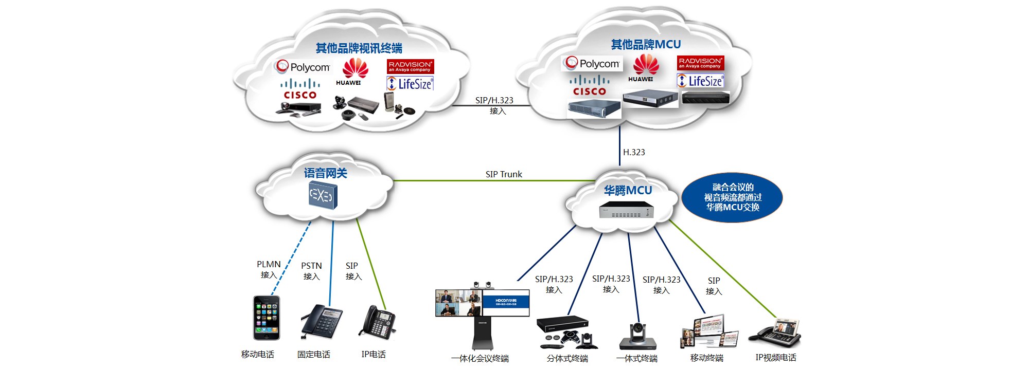 會議系統場景中部署了多個品牌的視頻會議設備,需要互聯互通。