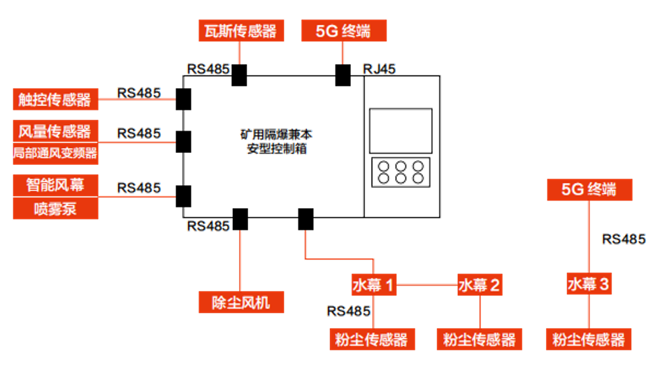 5. 數據共享:系統對外開放標準ModBUS TCP協議,可與掘進機等設備協同控制,實現數據共享、功能共用具備高度的集成化。